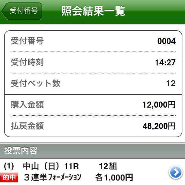 上位決着だったけど3連単12点で良く当ててくれた!
