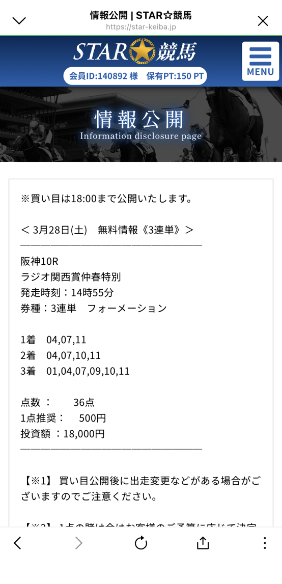 今日公開されていた無料情報3レース全部的中貰えました、3連単万馬券当たるし、堅かったけど毎日杯を1点で的中は流石です! 明日の高松宮記念1点的中期待しています! 今日だけで合計7万1160円勝てました!