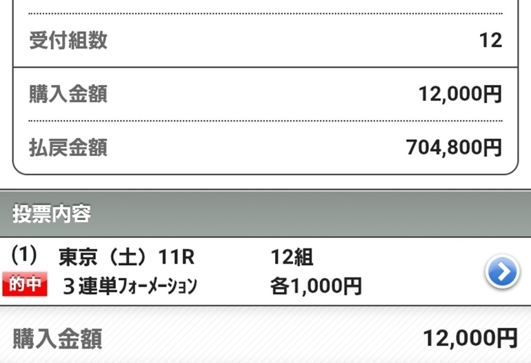 万馬券ゲット出来て幸せです!
