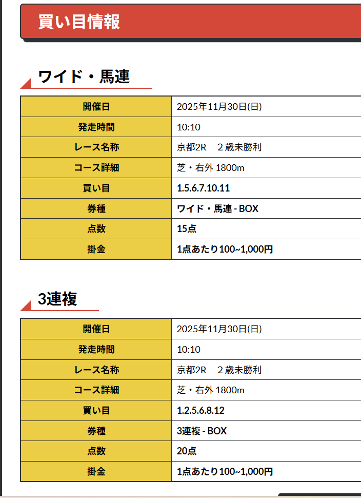 ここんとこ調子良さそうな競馬予想だったから使って良かったです、前回も10万越えだったような?!