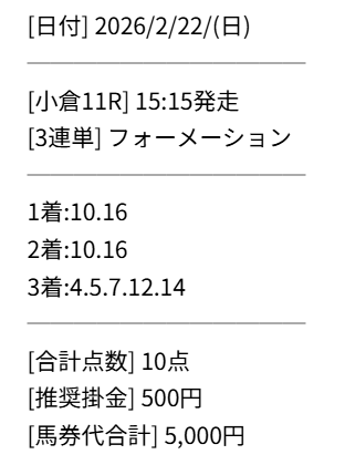 小倉大賞典予想的中ありがとうございました。 買い目画像もPAT画像もスクショ撮り忘れてしまったけど 711倍を3連単10点1点500円で的中 35万5500円、回収率も異常な数値… 先週知ったけど、平場も多めに予想出しているし、今週は先週以上に稼げそうな感じだな。